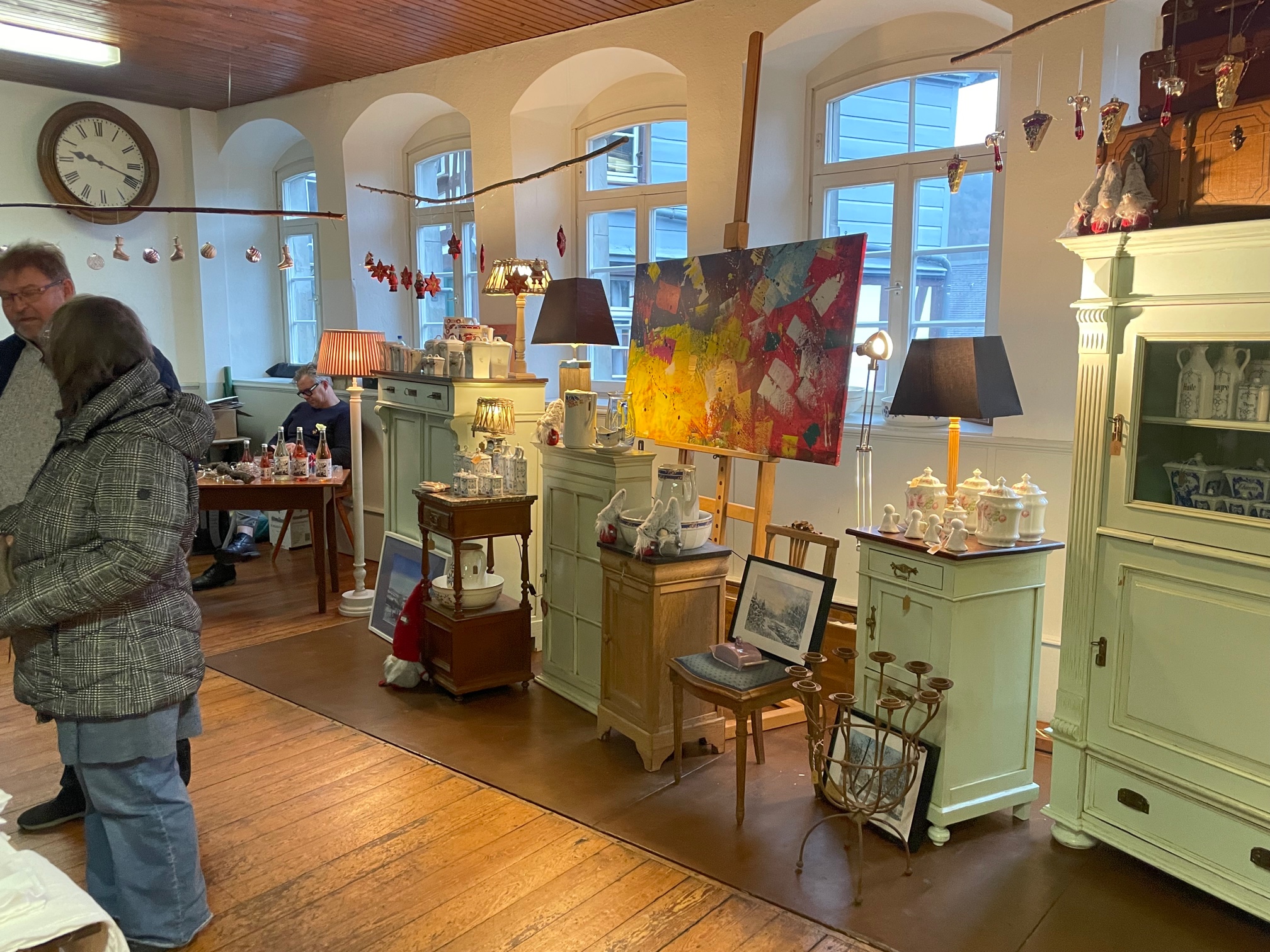 Bei der Weihnachtsausstellung im Kolping-Saal waren restaurierte Möbel aus verschiedenen Epochen, Aquarelle- und Acrylgemälde und Weihnachtliches ausgestellt.